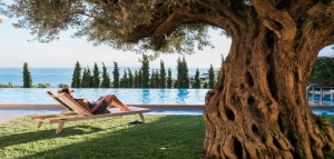 This beautiful villa casts a grand vision of pearlescent white-washed contemporary architecture, surrounded by fragrant olive trees and stunning views across the Ionian Sea. This home offers the final word in sleek, modern style and interiors, providing a chic, minimalist space of uncompromising qua