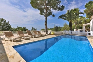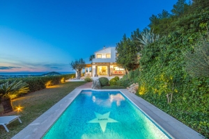 Approached by a sweeping driveway into the hills near the village of San José, this luxury villa is ultra-modern and enjoys total privacy. Villa Princesa Sara offers uninterrupted views of the pine-studded countryside and the beautiful beaches of Cala Jondal and Es Cubells.