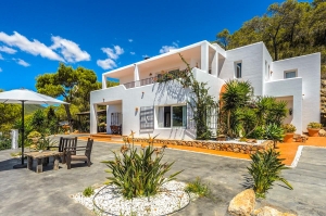 Cosmic Villas is delighted to present this charming villa has been newly renovated and offers spacious and comfortable living inside and out, perfect for a family holiday. This villa is set in beautiful grounds and boasts fantastic views over the sea, the islands of Espalmador and Formentera and the