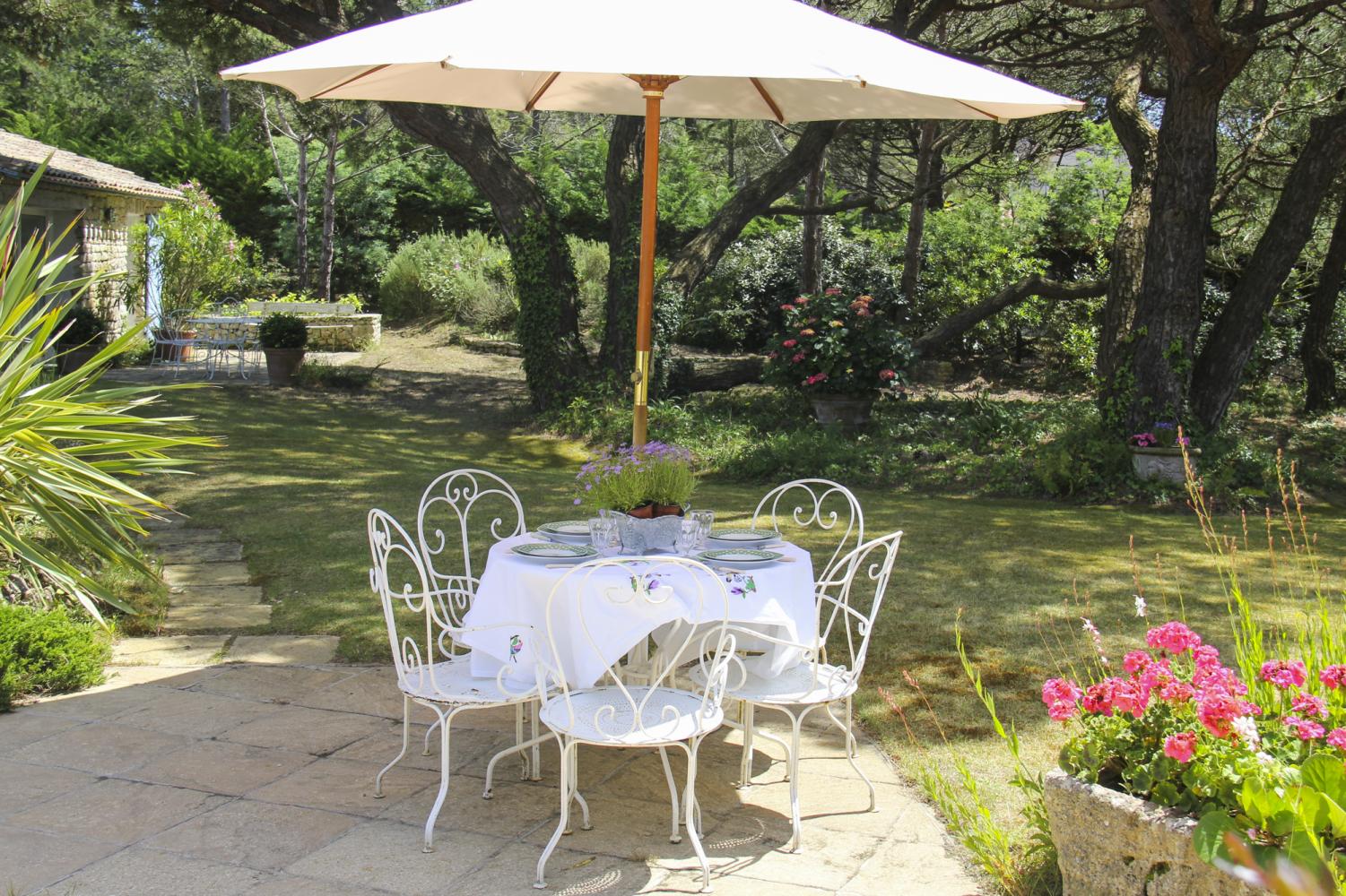 Pretty touches create a warm and welcoming environment, and large windows frame the lovely garden views.