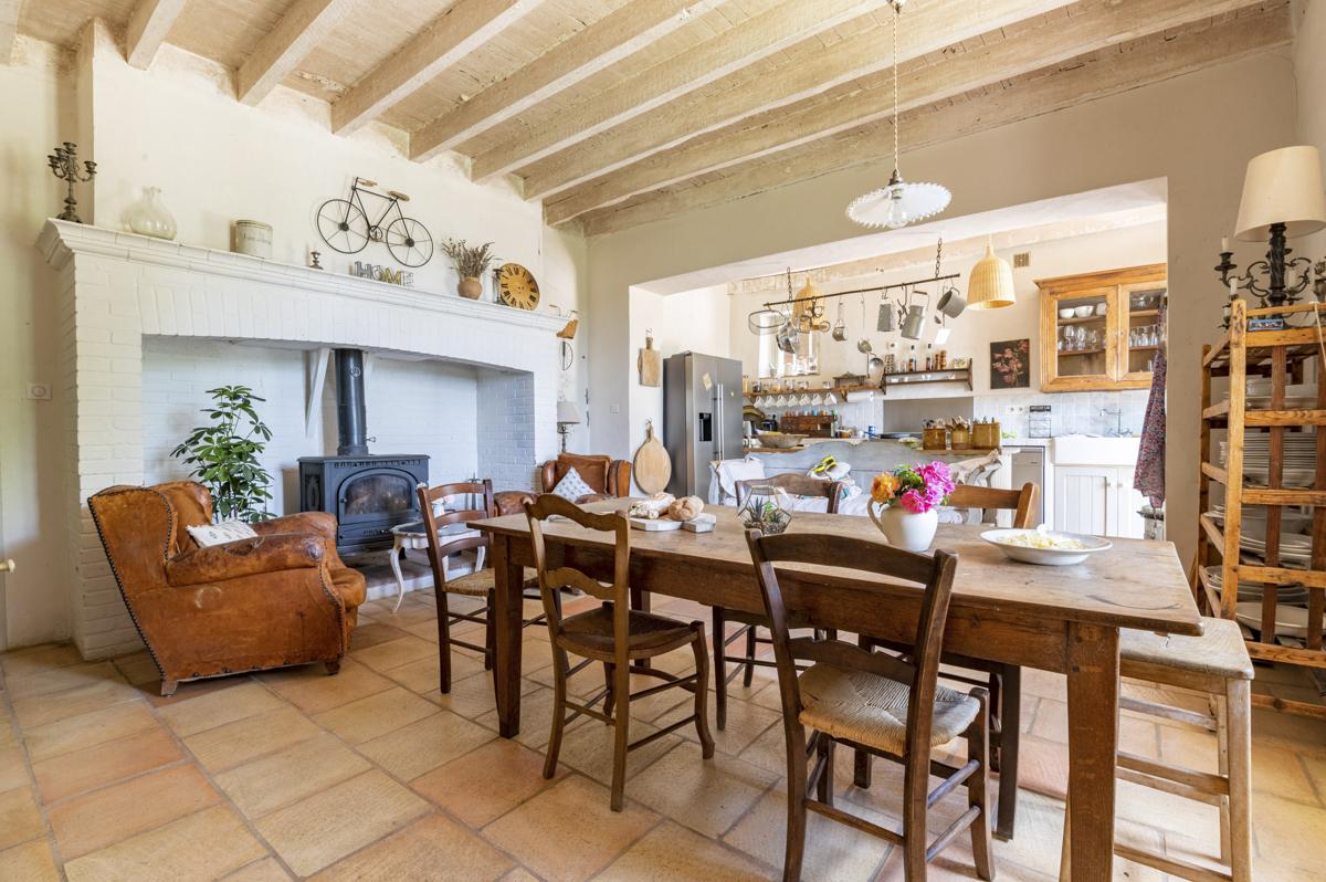 The welcoming kitchen-diner, brilliantly equipped for creating feasts to be enjoyed around one of the vintage dining tables and wood-burning fire, or outside alongside the summer scent of lavender, accompanied by good wine from a nearby historic Gaillac vineyard, has to be the soul of the home.
