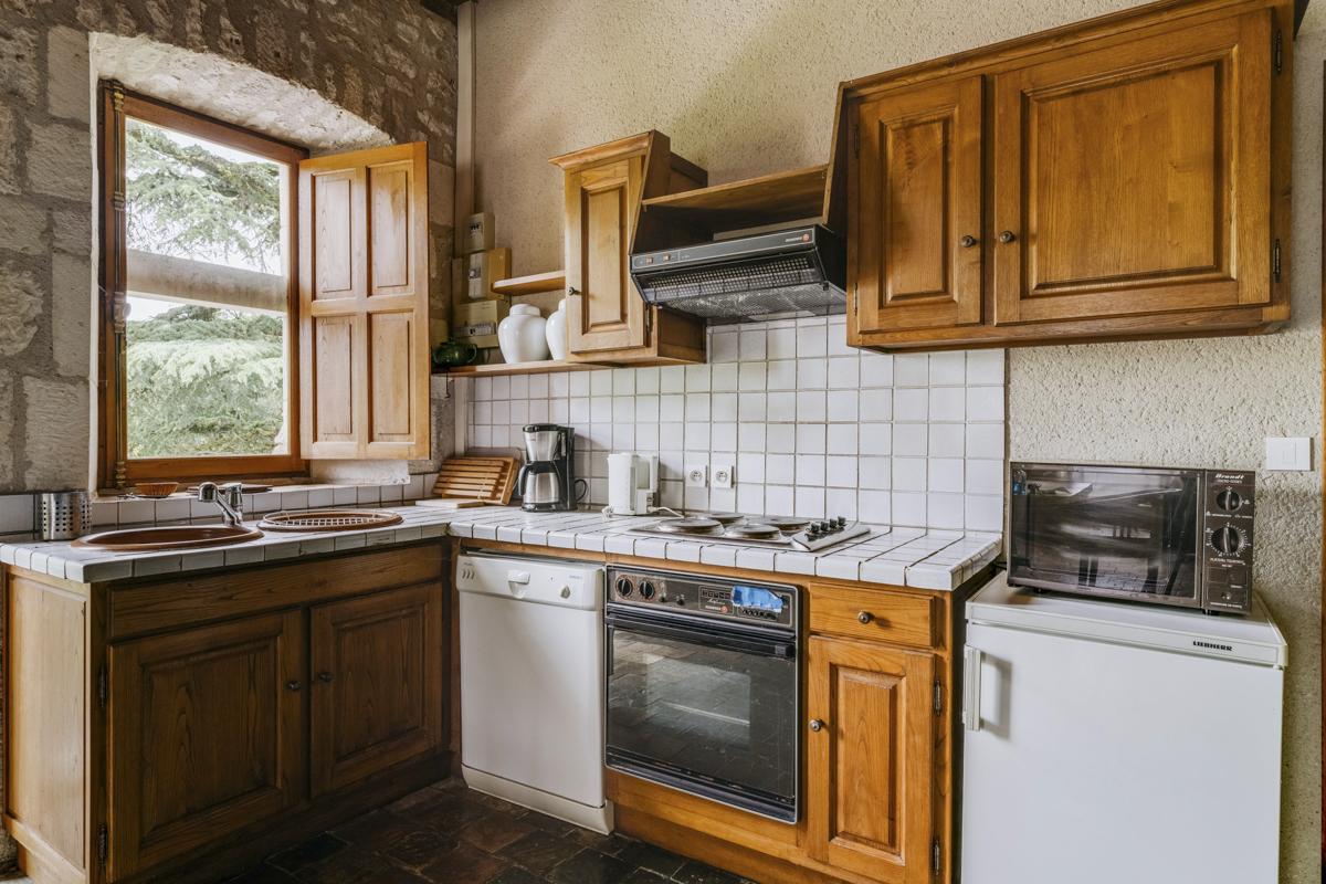 A separate apartment in the château provides extra privacy for a large family, with its own kitchen and living area, as well as a dorm room with five single beds for the kids.