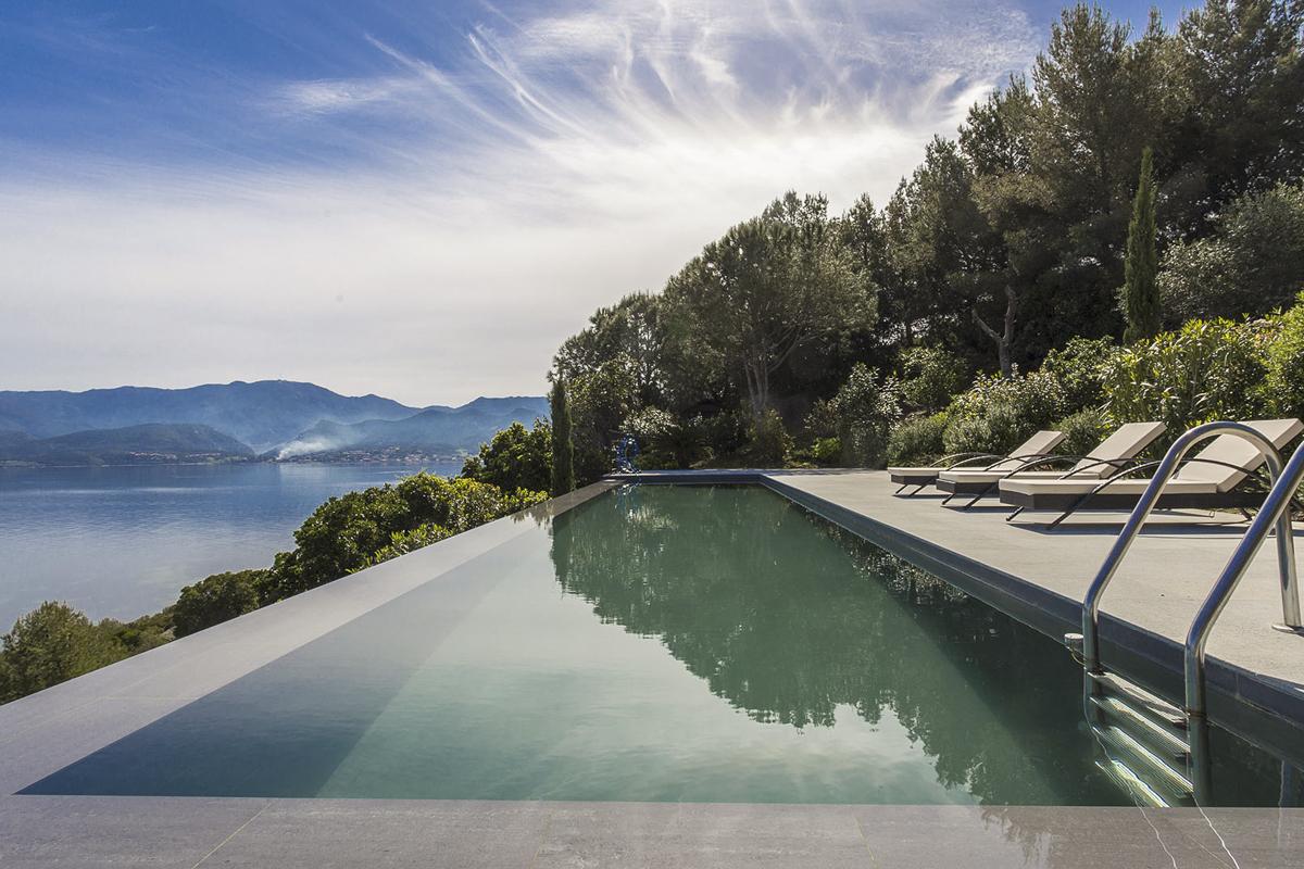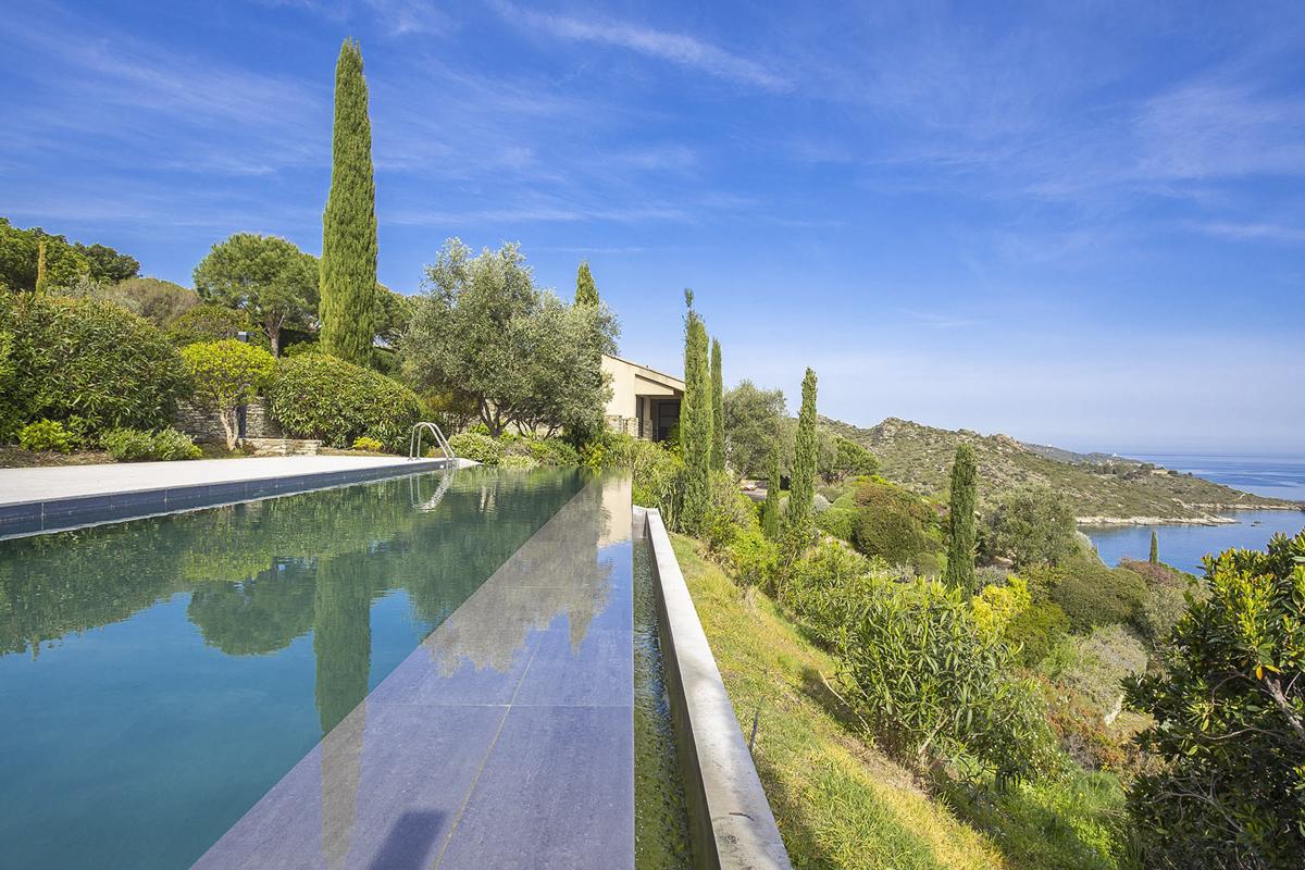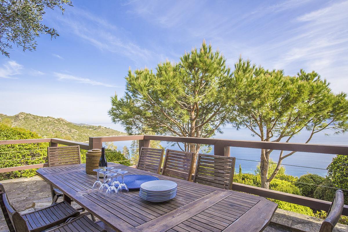 The stunning vacation home, which is located in a rural area near to the Désert des Agriates, offers countless breathtaking views of the ocean from its terraces and al fresco dining areas.