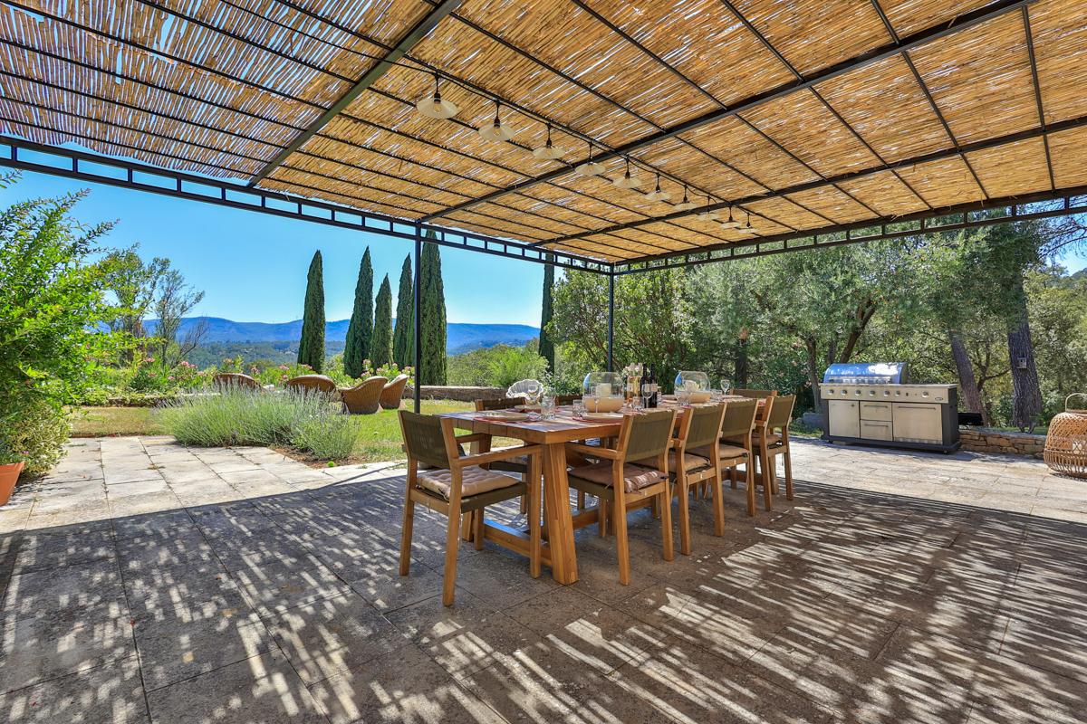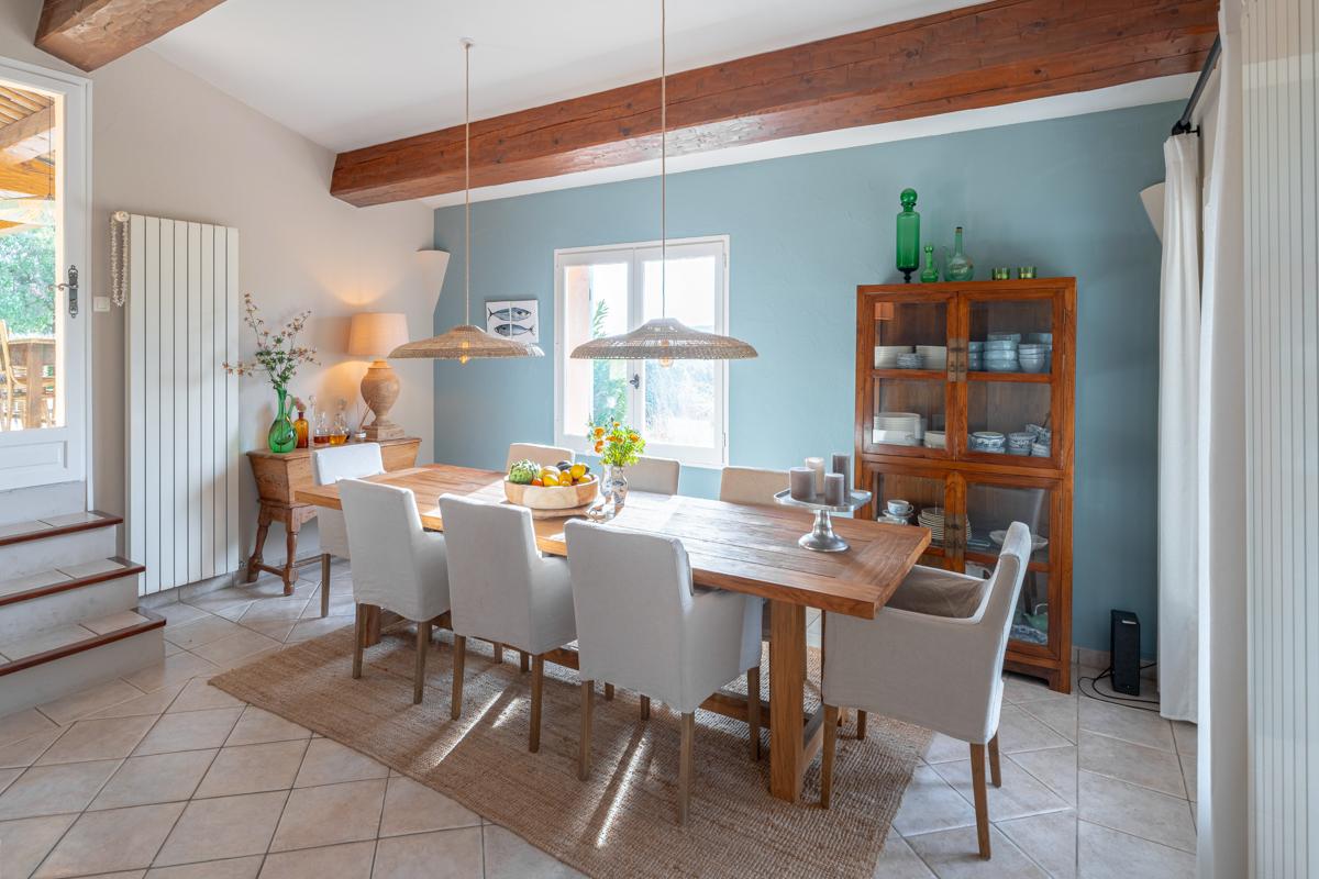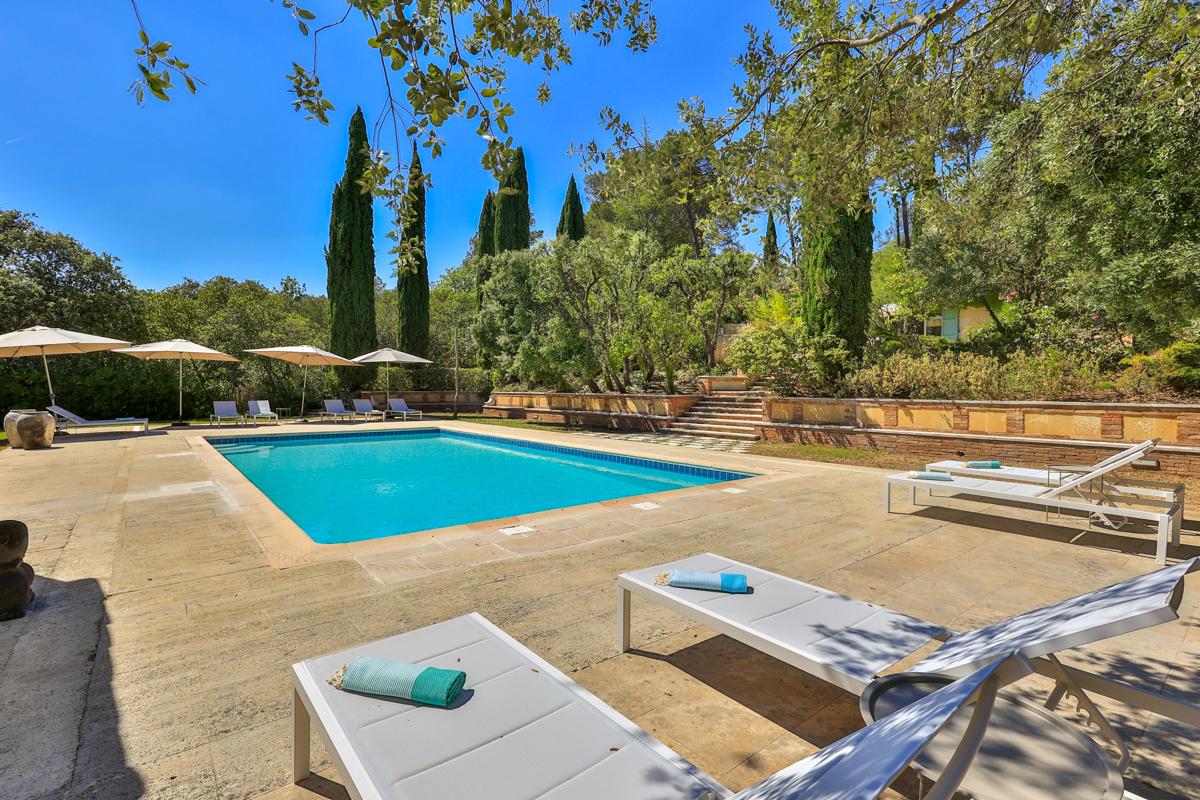 This picture-perfect home is located in the Dracénie district of Provence and features a magnificent heated swimming pool, a summer kitchen by the pool, and numerous terraces around its expansive yard.