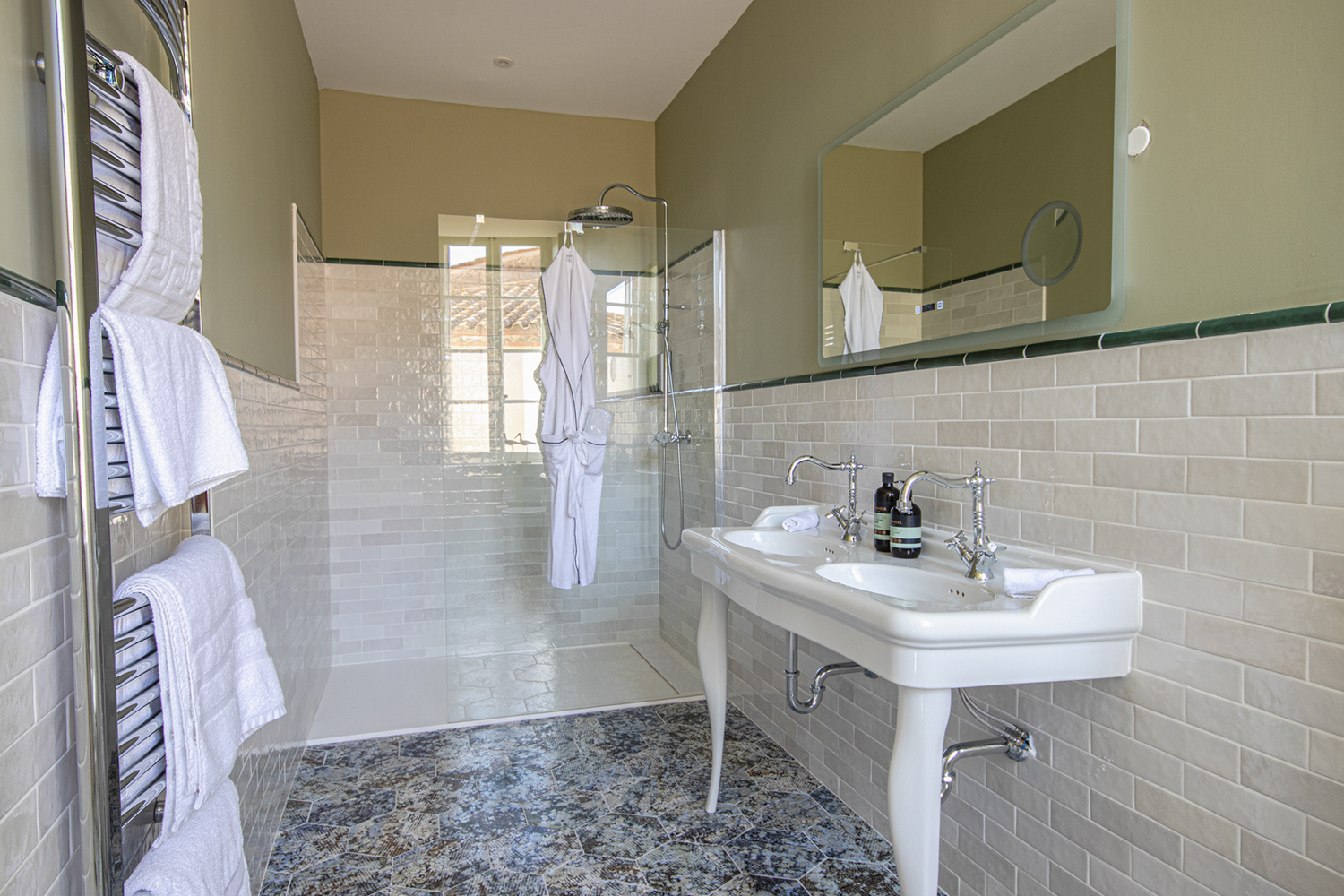 The owners have added modern amenities for the twenty-first century, like air conditioning in the majority of the bedrooms, a fantastic contemporary kitchen, modern bathrooms with rain showers, and a fantastic cinema lounge for movie nights in charming surroundings.