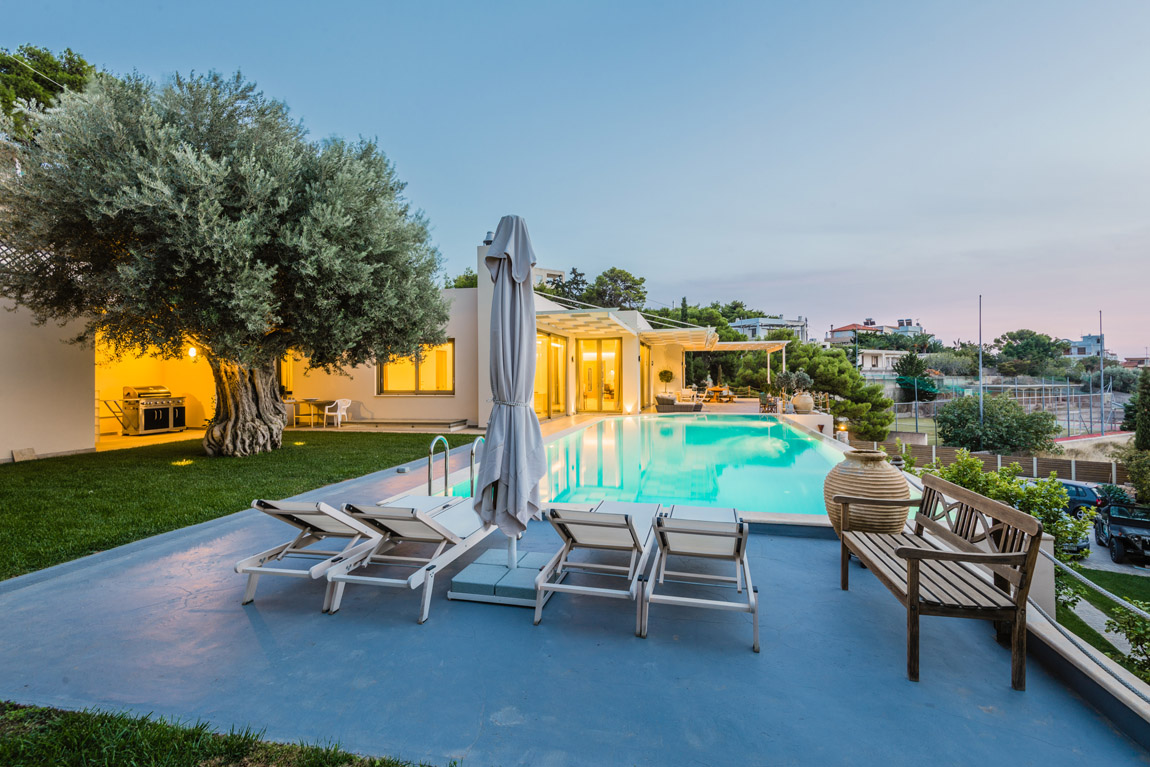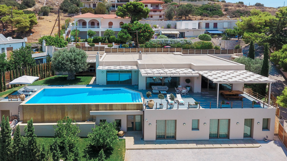 This newly built luxurious villa is located in Blue Coast in Lagonissi.