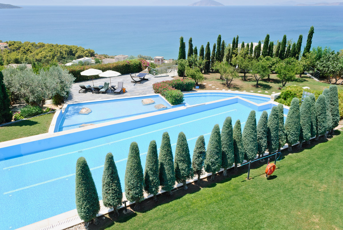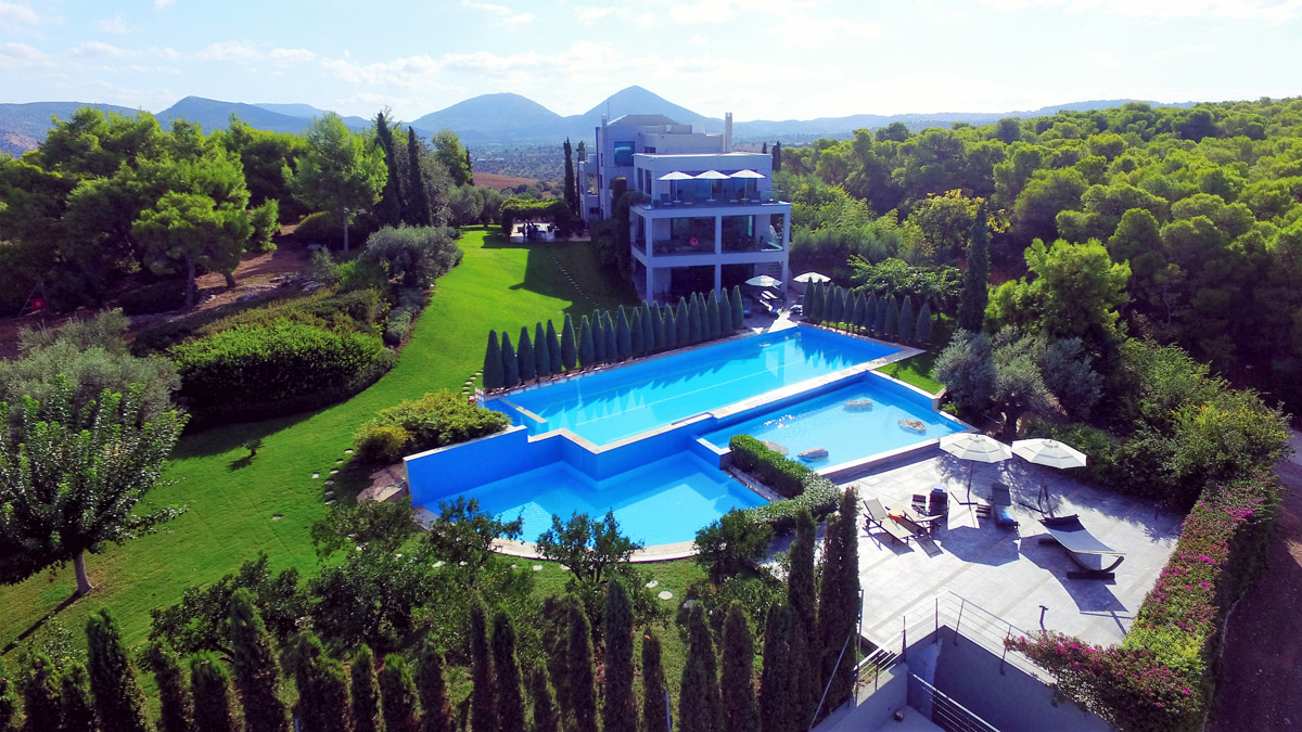 Two and half an hour drive from Athens International Airport and a 35 minute35-minutes its private helicopter landing pad.
