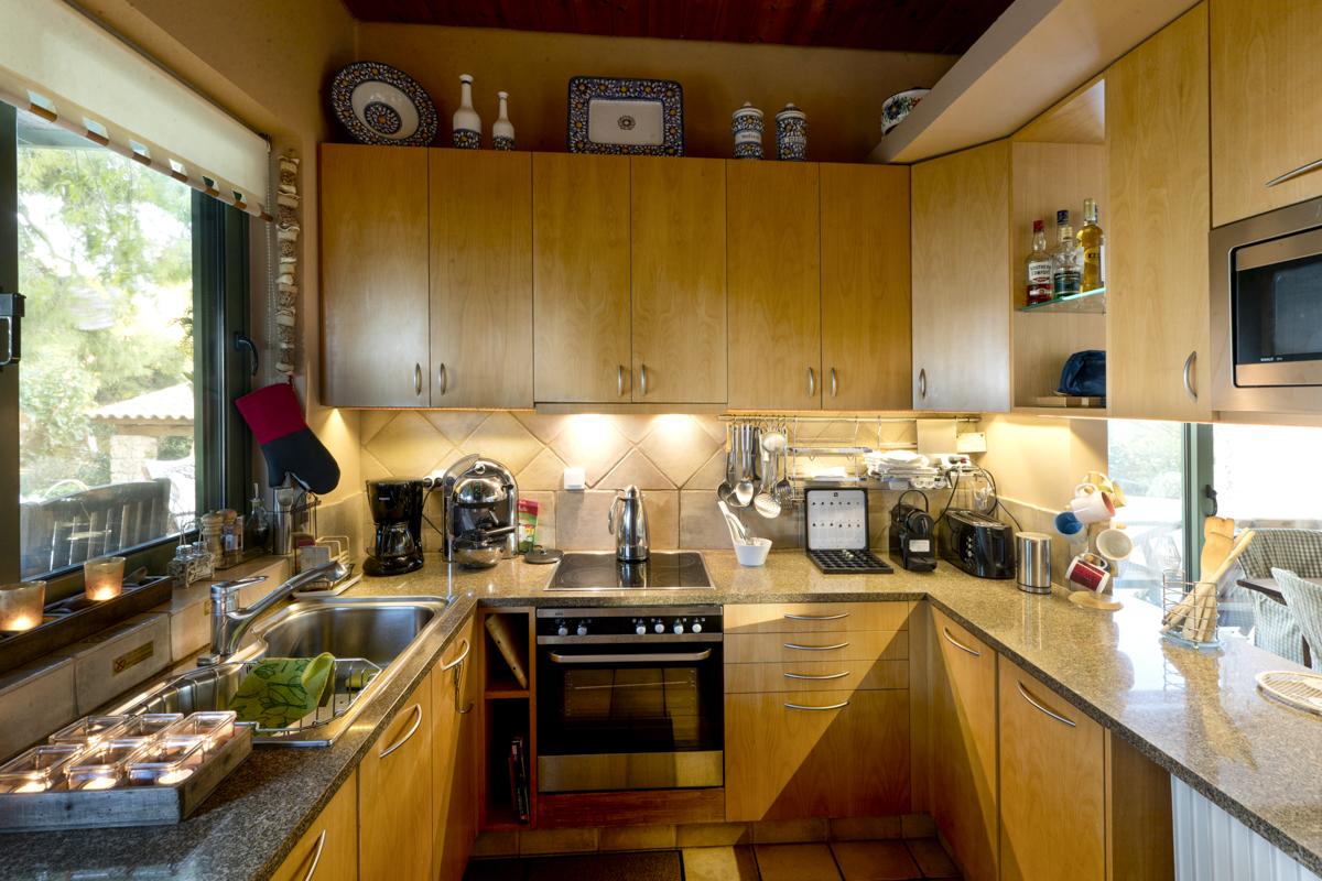 The kitchen is modern and open to the dining area through a substantial serving hatch. The villa is designed so that the inside and outside all seem as one. The views from every window are stunning.