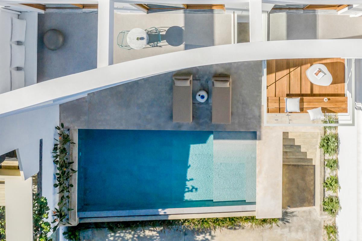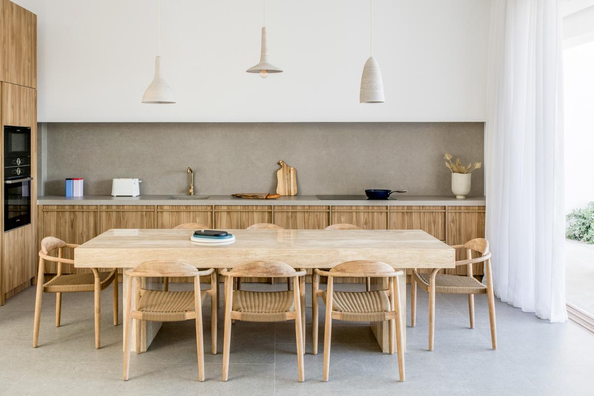 The living room is open-plan in style with incredibly nice sofas and chairs facing the enormous wall-mounted television and has access to the main terrace and infinity pool. The room's doors open to a beautiful courtyard area on the other side. A Nespresso coffee maker and other high-end gadgets are included in the stunning minimalist kitchen, which also has lovely wood and stone accents. You'll wish you could bring the dining room set from home, including the chairs. It has great style!