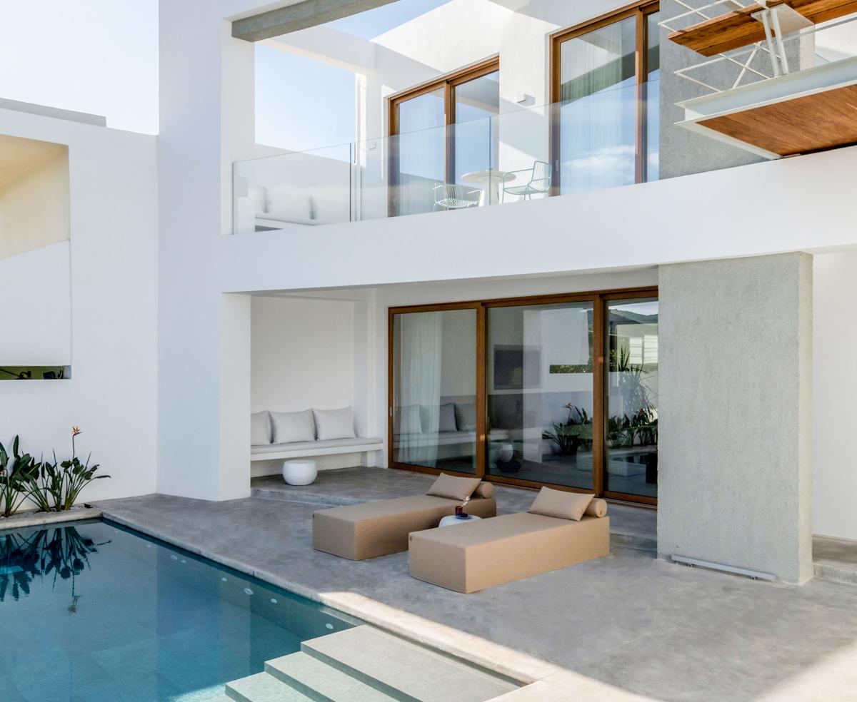 The villa has five magnificent bedrooms, incredible living areas, artistic flair, wonderful use of a range of materials, and an incredible facade with a curved form. The frame, which is completely white, features a suspended steel balcony that overlooks the sea as well as magnificent terraces where visitors may unwind in opulent surroundings. A very basic approach, pops of colour that stand out against the all-white walls, and carefully chosen furniture, lighting, and accessories are all featured in the gorgeous interior design. It exudes a sense of elegance and pure simplicity that makes you feel very privileged and fortunate to be staying there.