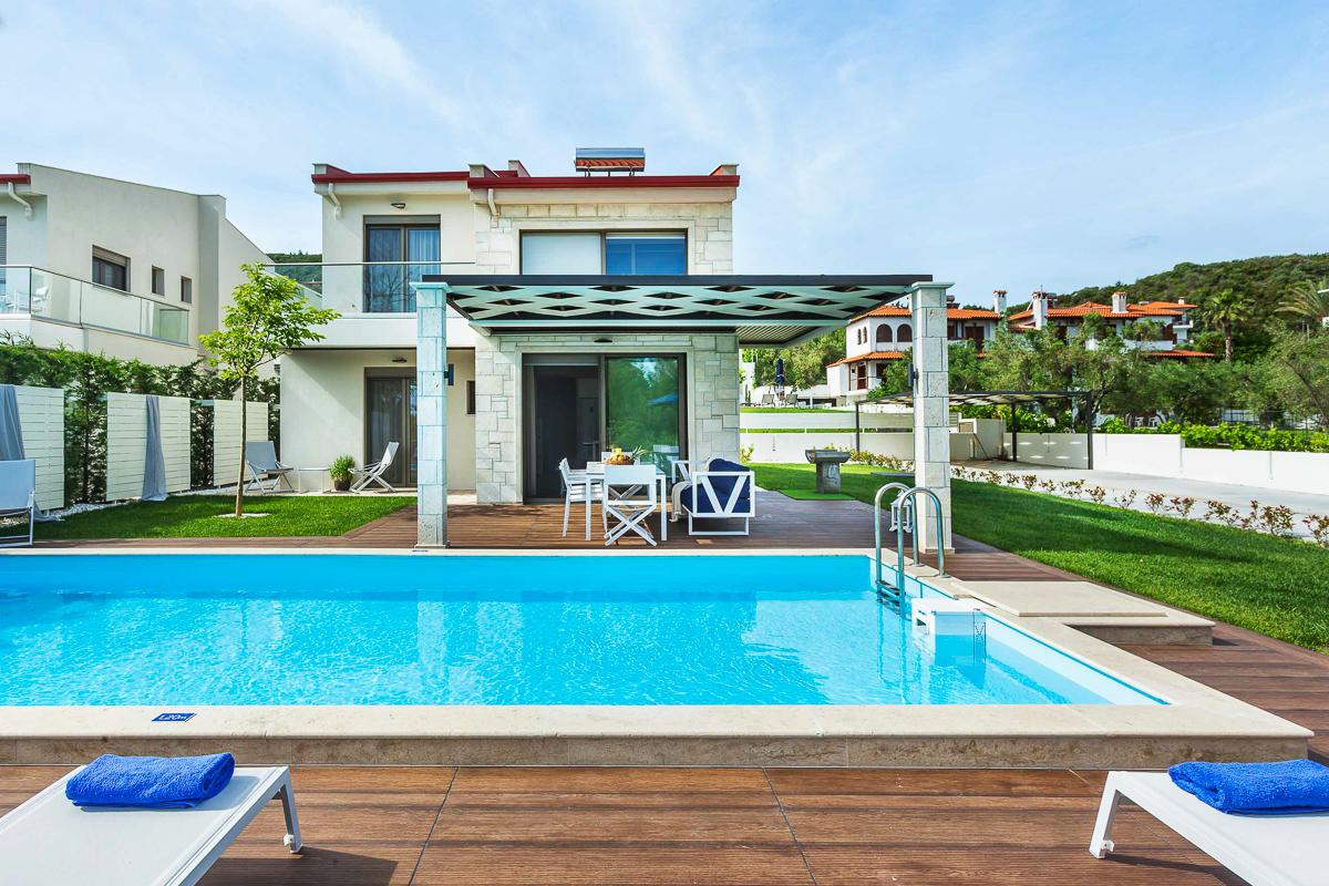 Come to this villa for an unforgettable stay in one of the most beautiful areas of mainland Greece. As part of a boutique resort complex of 10 villas, Elpida is located in the outskirts of the coastal village of Pefkochori, in Halkidiki.