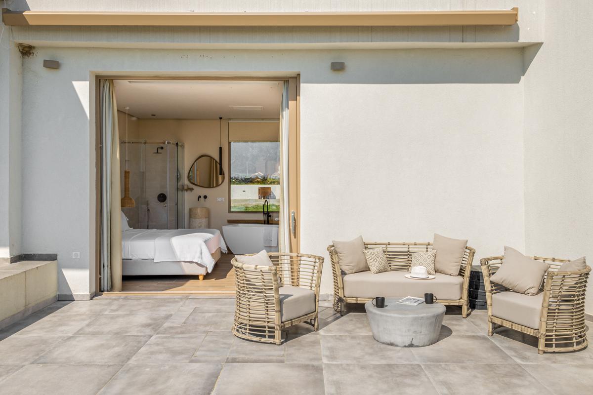 On the peninsula of Sithonia in Halkidiki's Elia Nikiti, the magnificent, immaculate villa boasts a seaside location.