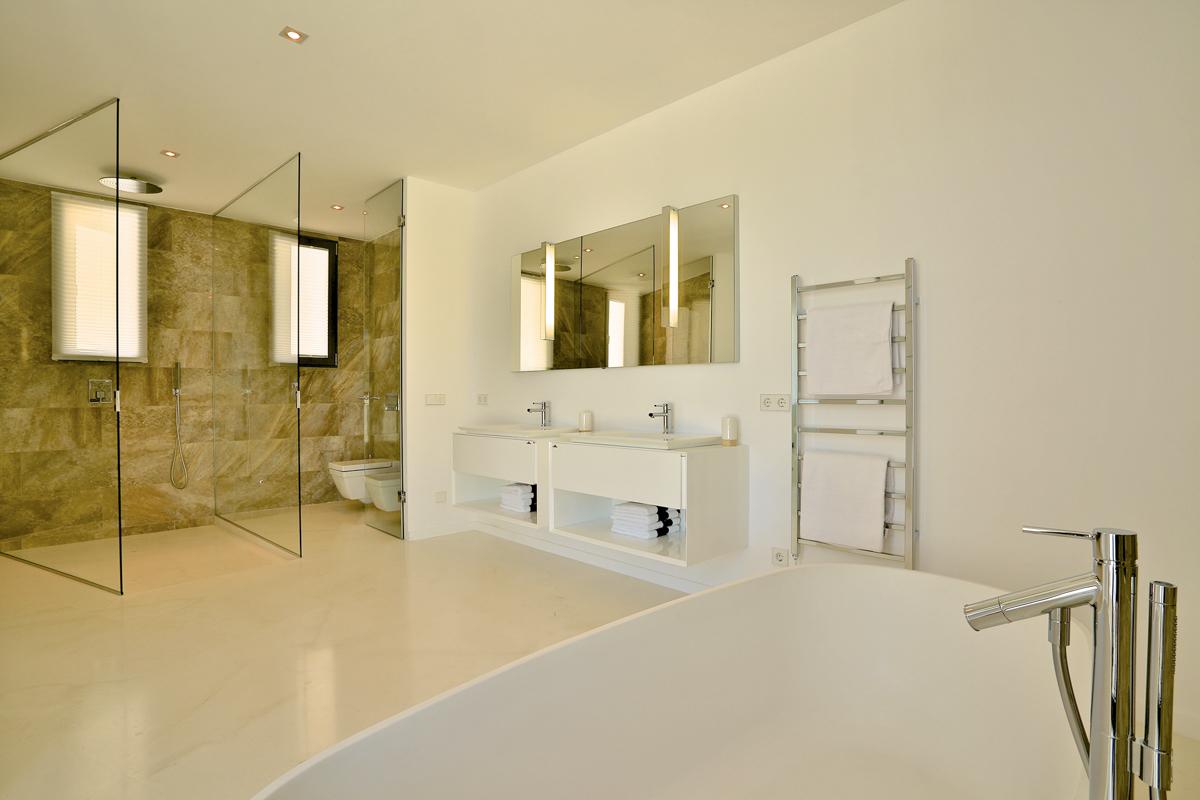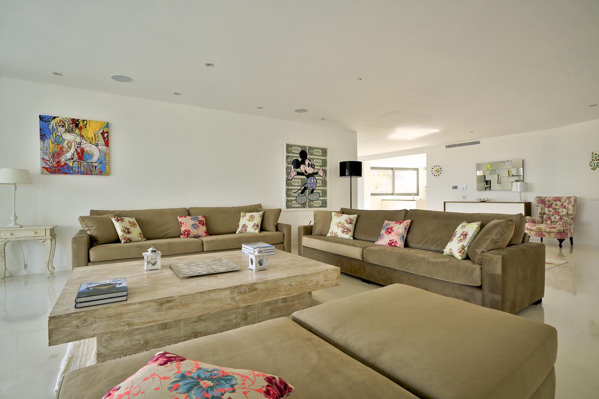 A popular beach like the white, pebbly Es Cubells and the magnificent Cala Jondal are easily accessible from the villa, which is located in a private gated community.