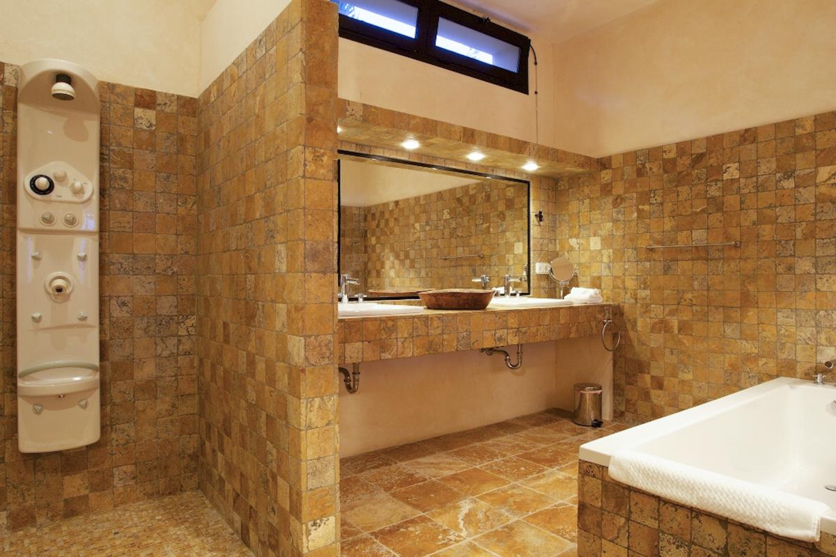 The villa has low walls made of bright, honey-colored natural stone and cozy terracotta render that are centered around a lovely courtyard.