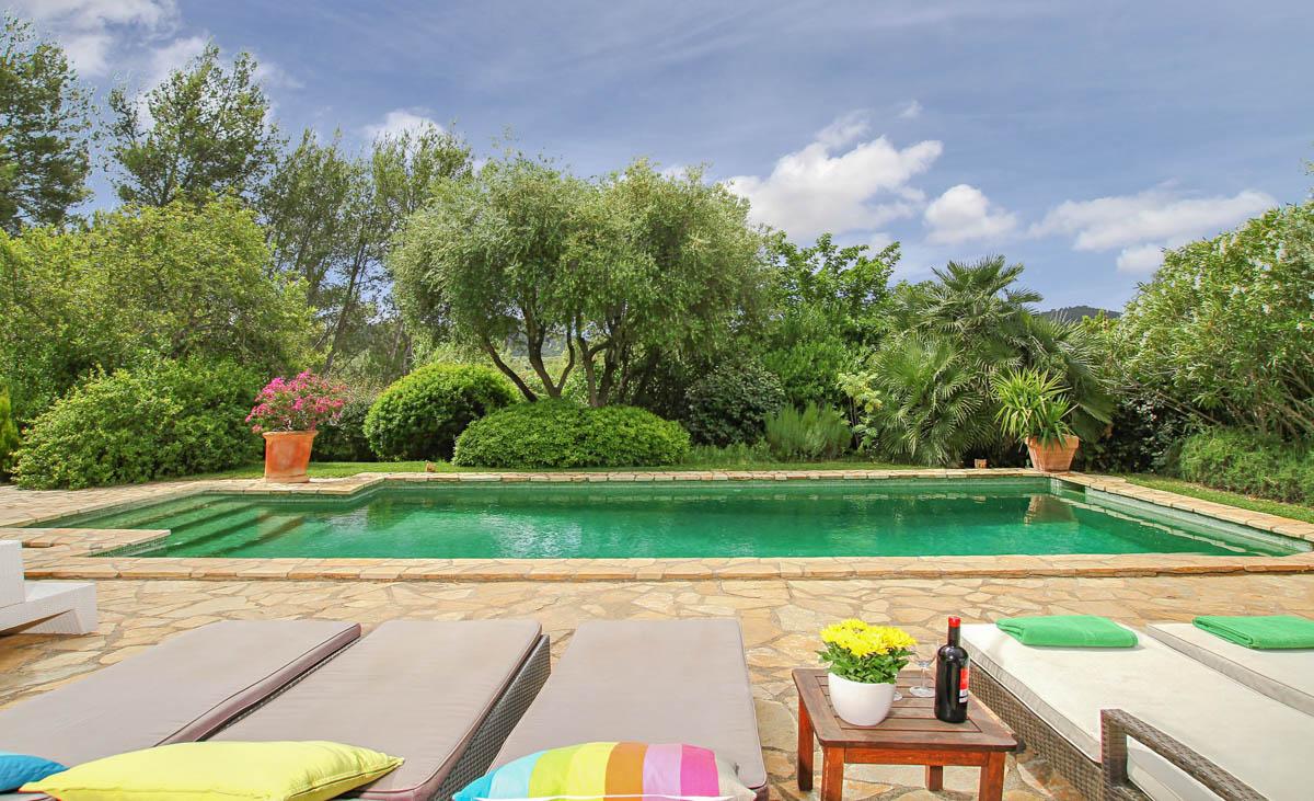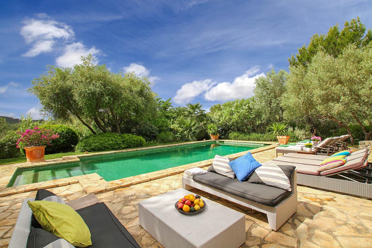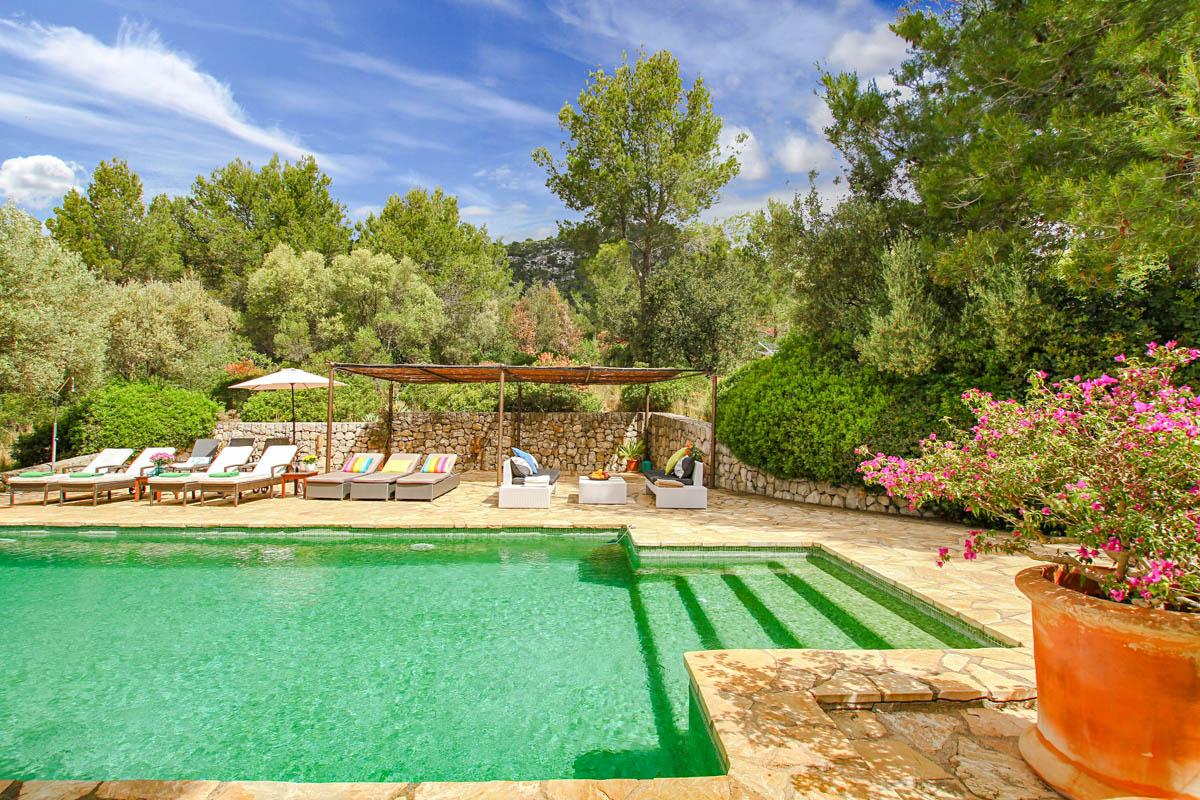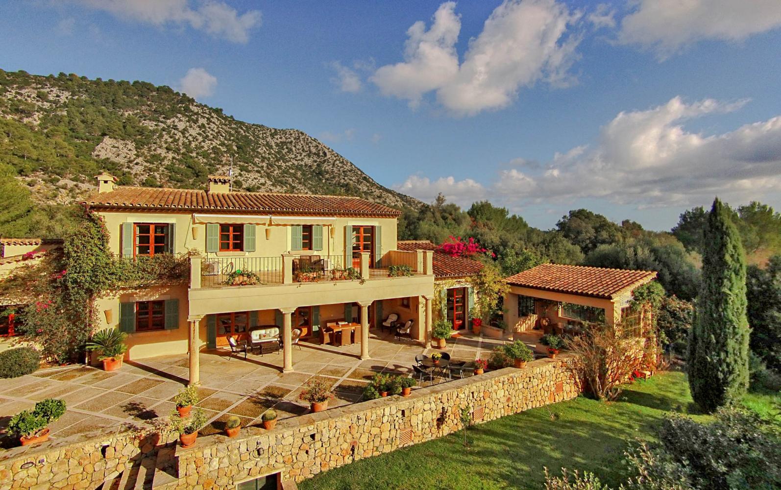 Cosmic Villas is delighted to present this hacienda-style farmhouse that’s been converted into a spacious holiday home that enjoys a truly idyllic setting within the beautiful Mallorcan countryside. It’s hidden away in the Campanet Valley, with the Tramuntana Mountains as your only neighbour for miles, creating the ideal place for getting away from it all.