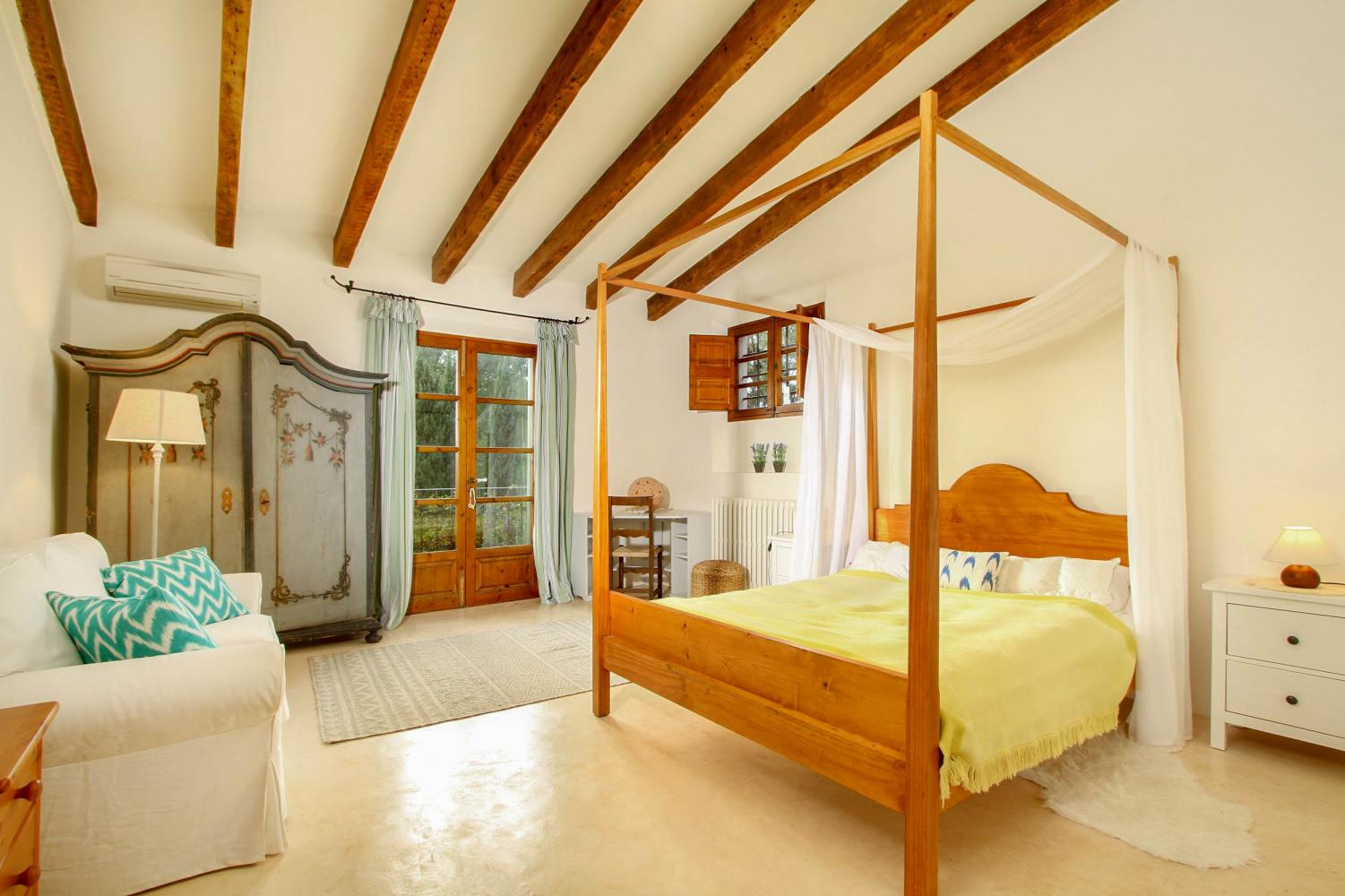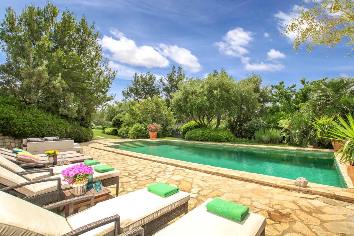 Set within extensive gardens that feature an array of local trees and plants, this villa offers a slice of traditional Mallorcan charm inside and out. Under the terracotta roof tiles, you’ll find whitewashed walls, characterful wooden beams and shutter-style windows.