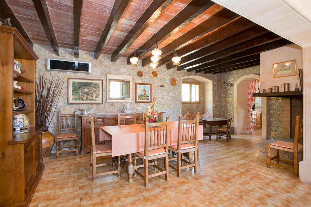 You enter the property via a spacious hall with an inner archway leading into the living/dining room, featuring stone walls and a feature fireplace creating a cosy, welcoming ambience to the space. The pine fitted kitchen is ready for your use if you would like to try your hand at some Spanish classics. Doors open from the kitchen onto the poolside terraces, the ideal spot for some chilled beverages to cool you down in the warm Spanish climate. On this ground floor there is one en suite double bedroom and a further bath/shower room. Stairs lead up to the first floor where there are two double bedrooms and two pretty twin bedrooms, with one ensuite and a shared shower room. There is an enviable terrace with spectacular views, a perfect spot for relaxing and reading your book. This house is comfortably furnished throughout in Mallorcan rustic style with many interesting crafts and features.