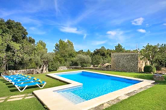 Cosmic Villas is delighted to present this wonderful villa where you can pick ripe olives from the trees and enjoy them with a luscious glass of wine at this secluded villa in Mallorca. Hidden among trees at the end of a long drive, here you’ll lounge all day by the L-shaped pool in the lawned garden, or sit in cool comfort in the shade of the terrace. Here you should relax - maid service and a welcome pack with your first day’s breakfast (including coffee and tea) are included with your stay.