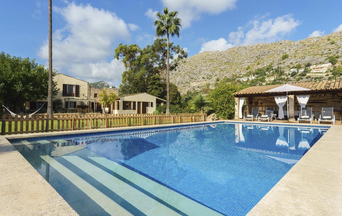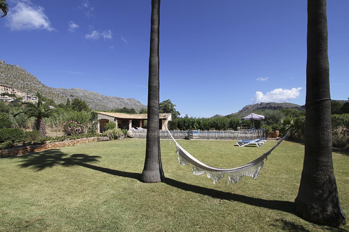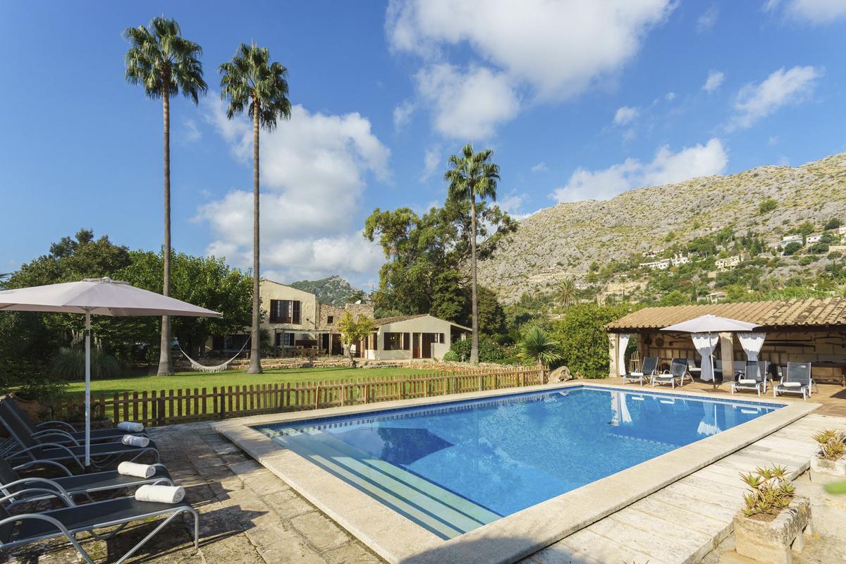 The bedrooms, one on the ground-floor and three on the first-floor, are bright and airy, with direct access to the outside from two of them, inviting in the light and warmth of the Mallorcan days. The beds are extremely comfortable with great cushion headboards and plump pillows. The master bedroom has a fabulous set of wooden doors which open out on to views of the incredible nearby mountains and the garden. Great modern bathrooms ensure your comfort, with fluffy white towels provided.