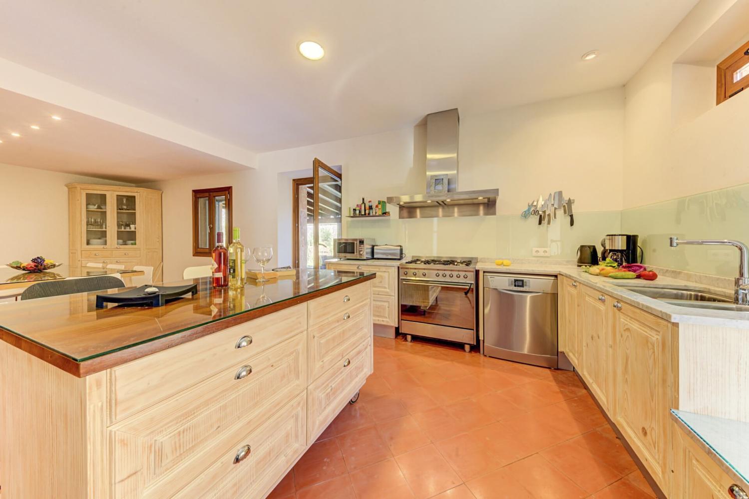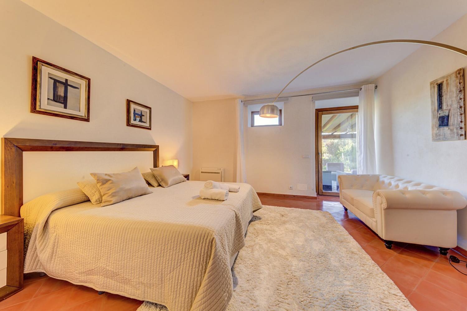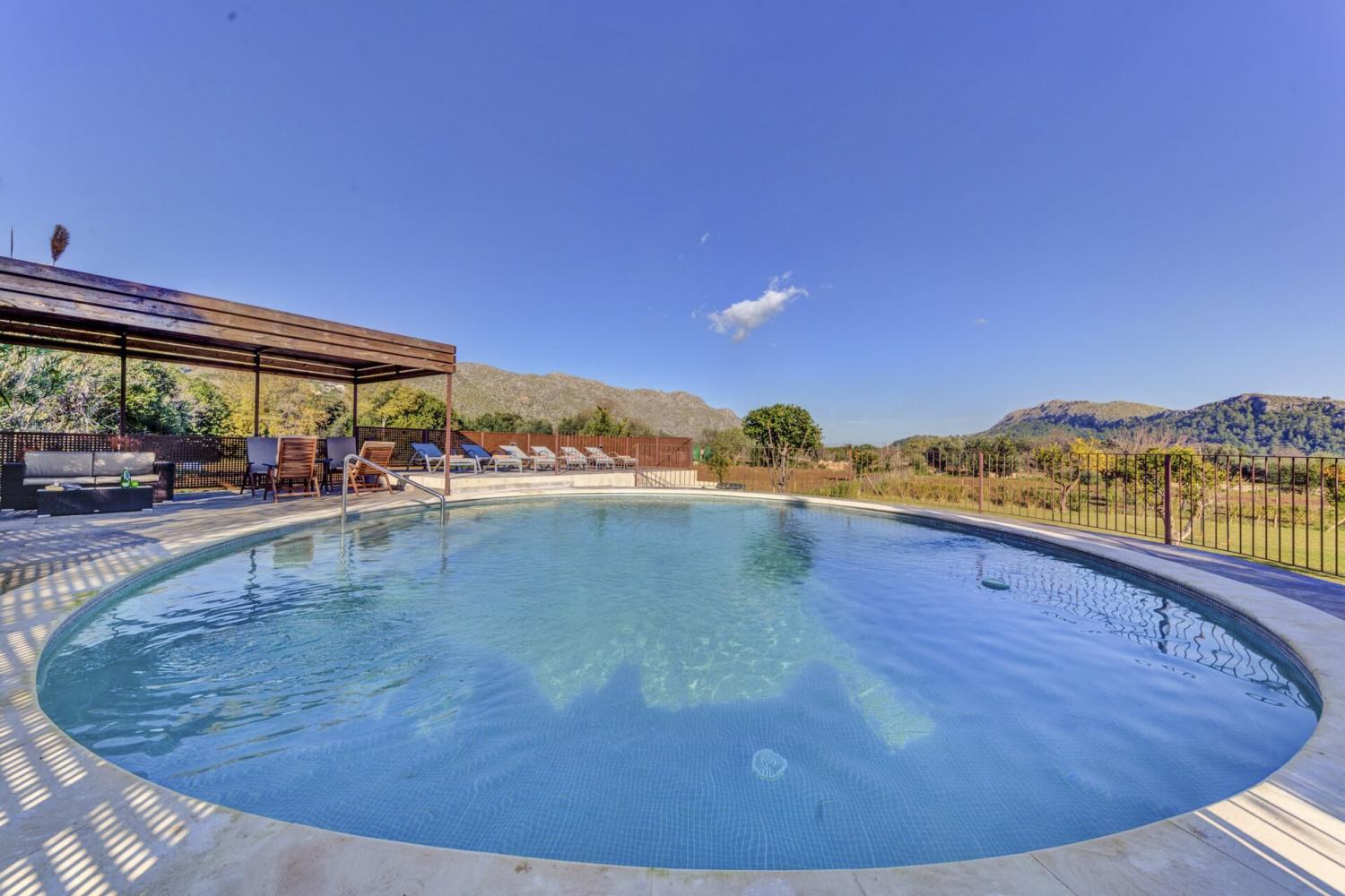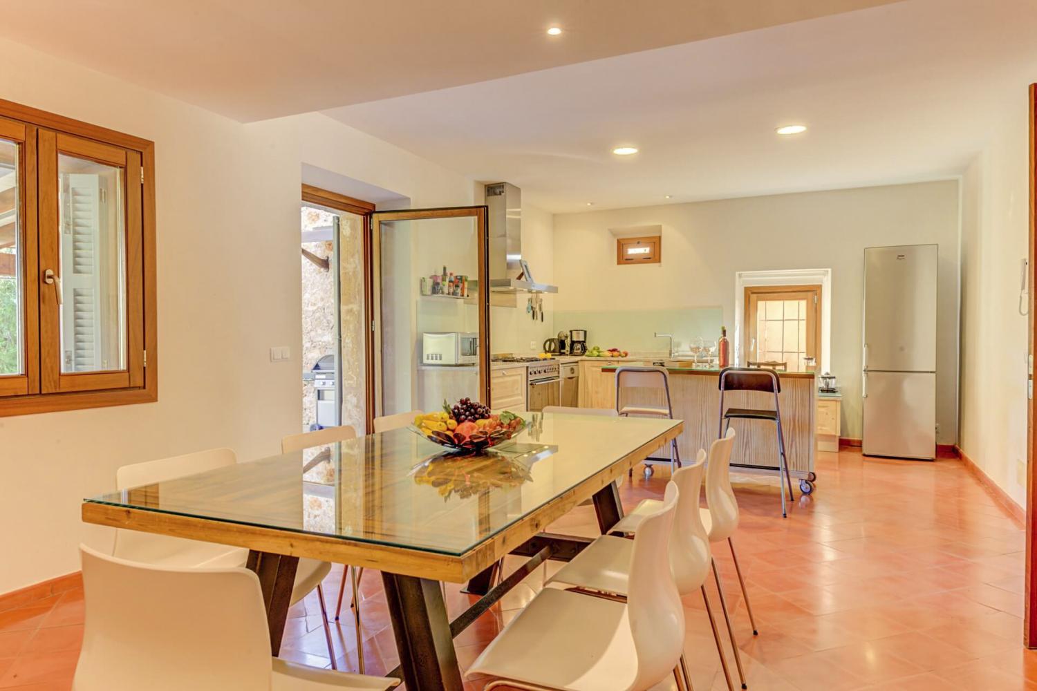 Spend unforgettable days whilst on the exterior of the villa. Surrounded by the breathtaking natural beauty of rolling fields and the peaks of the Tramuntana mountains, relax on the outdoor terrace decorated with a dining table, artsy chairs and rattan sofas, under the shade of a wooden roof. Take walks around the extensive outdoor area, where you can play games on fields or games scattered around the villa. When you want to cool off from the sizzling sun, why not slink into the outdoor swimming pool and for cooling relief. If you want to feel the sun's force, you can bask in its rays on sun-loungers or recline on more sofas and seats here!