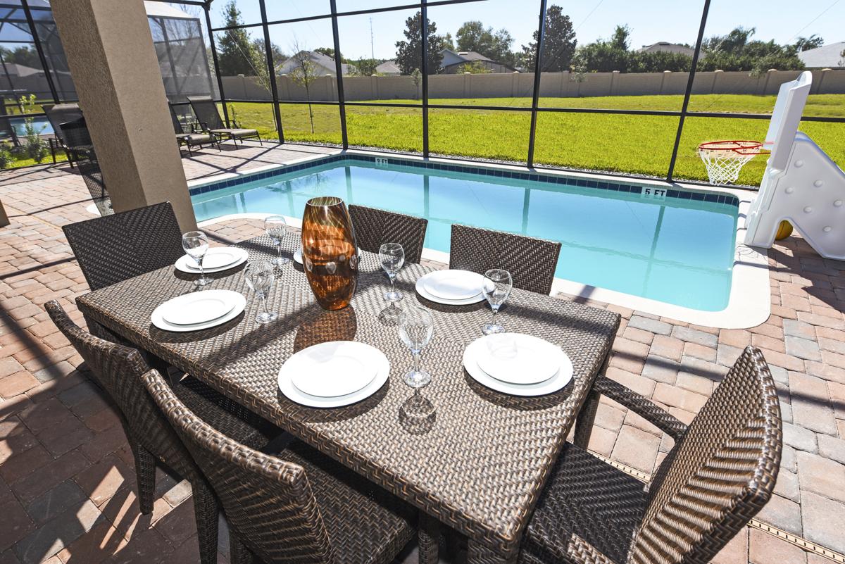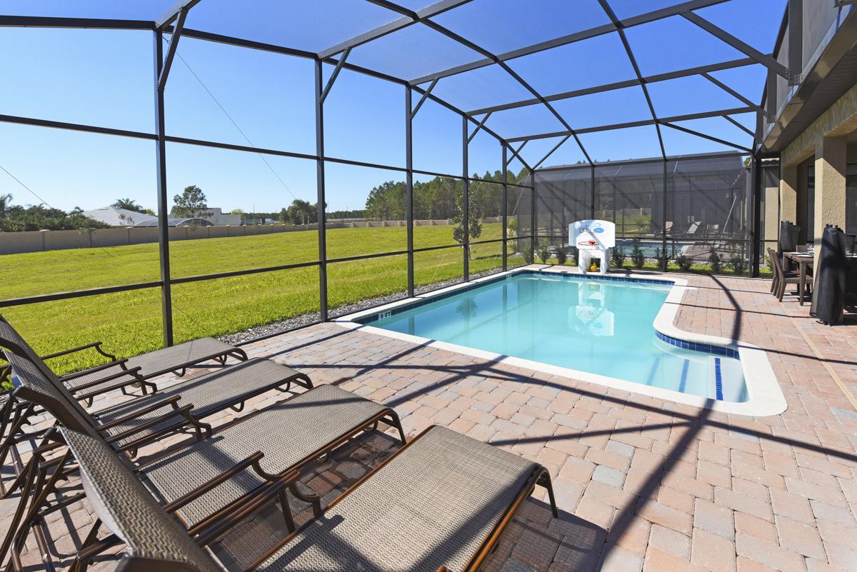 Outside, you have a private pool complete with a basketball hoop, flanked by a row of sun-loungers where you can soak up the sunshine and refresh with occasional dips into the pool when required!